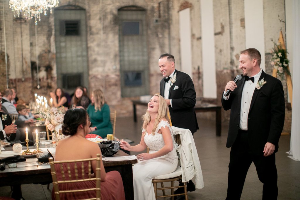 I loved that Steve and Stacy were not shy about the foot of snow that we trudged through to get to their first look location. It was so them! We laughed and smiled the entire time. After the ceremony everyone headed to W.A. Front and Company in St. Paul for drinks and a meal. The setting was absolutely perfect. I loved the warmth of the room as everyone mingled and shares stories with one another.